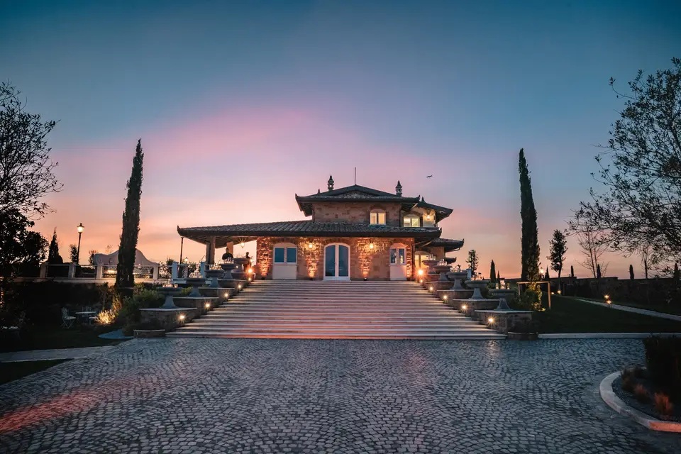 Immerso nel verde dei Colli di Anguillara Sabazia, a soli quindici minuti da Roma, Castello Raphael è una dimora storica di rara eleganza che unisce il fascino dell'architettura castellana alla cura maniacale per i dettagli contemporanei. Due ettari di parco con ulivi, lecci e cipressi mediterranei circondano la proprietà, creando un contesto naturale che cambia volto con la luce del giorno: luminoso e raffinato nelle ore pomeridiane, fiabesco e romantico al tramonto e di sera.