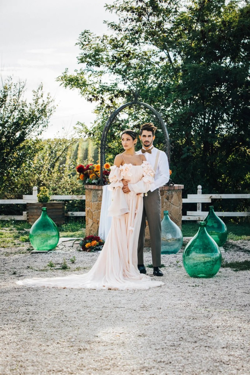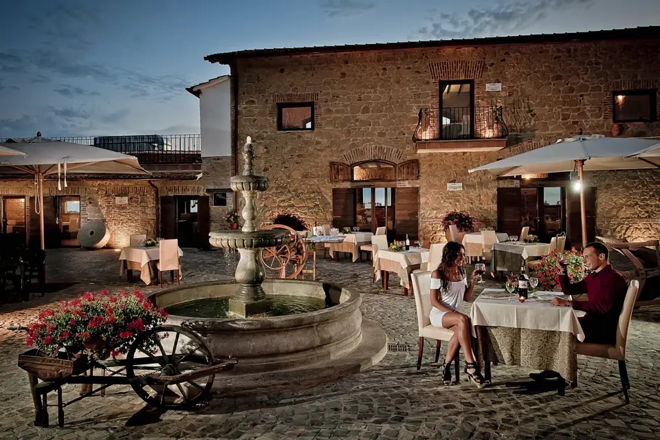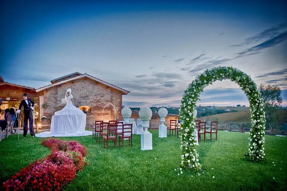 L'atmosfera è quella di un matrimonio in campagna, a soli trenta minuti da Roma: cerimonie civili o simboliche all'aperto o in piscina, cocktail nella piazzetta o tra gli ulivi, ricevimento nel salone principale o nel fienile dal fascino rustico. La vocazione green della struttura si riflette nell'offerta food — cucina del territorio, prodotti locali, menù personalizzabili — e nell'attenzione agli allestimenti naturali che caratterizzano ogni evento.