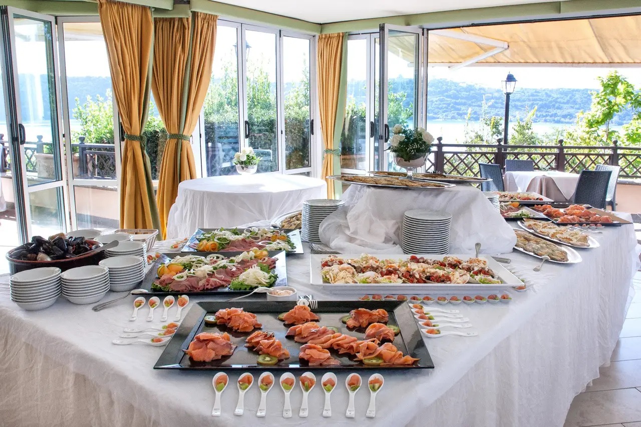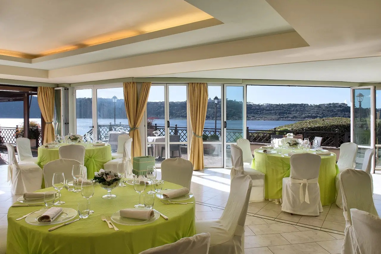 Affacciata direttamente sul Lago di Albano a Castel Gandolfo, Villa degli Angeli è una location che unisce in un'unica struttura il ristorante, l'hotel e gli spazi per la cerimonia. Casa comunale autorizzata per il rito civile, permette di celebrare il matrimonio ufficiale in terrazza con il panorama del lago come sfondo — senza dover organizzare spostamenti tra chiesa, comune e sala.